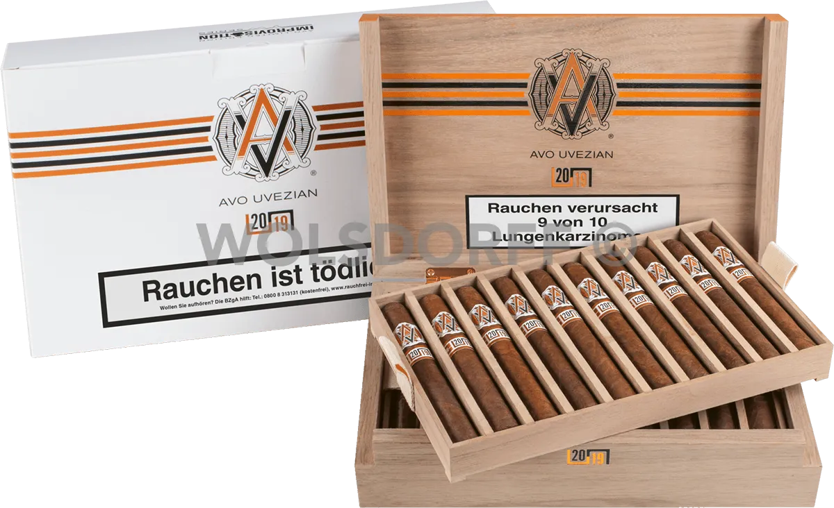 Die vielfältigen Geschmacksnuancen reichen von süßem Zedernholz bis hin zu erdigen Noten und sorgen für eine ausgewogene Balance aus reichhaltiger Creme und erdiger Würze. Die erfolgreiche Verwendung von insgesamt sieben verschiedene Tabaksorten aus drei unterschiedlichen Ländern (Ecuador, Peru, Dominikanische Republik) zeigt die Handwerkskunst AVO's Master Blender. Das samtweiche Deckblatt weist zu Beginn eine Kombination aus süßem Zedernholz und erdigen Noten auf. Das dominikanische Umblatt enthält fünf verschiedene Tabaksorten als Einlage, die sowohl aus dominikanischen als auch aus peruanischen Blättern bestehen und dadurch eine komplexe, intensive Gaumenstimulation mit einem perfekten Gleichgewicht zwischen reichhaltiger Sahne und erdiger Würze bieten.
