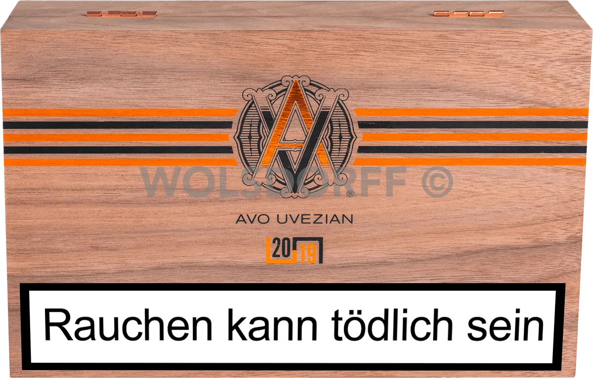 Die Verpackung der AVO Improvisation Limited Edition 2019 ist von der Wickelform (Zigarrenpresse) der Box-Pressed-Zigarren inspiriert. Sie wird verwendet, um die Zigarren während des Rollvorgangs zu formen. Das zweite Band der Zigarre ist ebenso von der Wickelform inspiriert und ziert den Jahrgang der Edition "2019", welches in das Formmuster der Zigarrenpresse eingearbeitet ist.